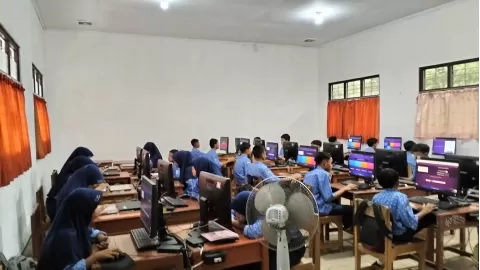 Laboratorium komputer dirancang dengan tata ruang yang rapi, sirkulasi udara baik, dan pencahayaan memadai agar siswa nyaman saat praktik.